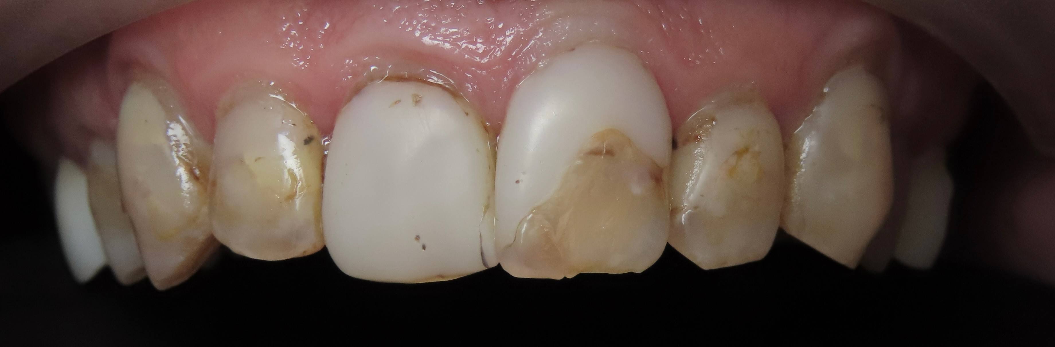Needless to say, after more than five years of basically no dental care, a terrible diet, and an unfathomable amount of stress, Paul’s teeth needed a lot of work. He had developed significant decay, damage, and discoloration. This not only compromised individual teeth and how his smile looked, but also the overall strength and stability of the bite